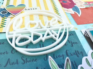 I used the Thickers gold foam word along with the exclusive alpha for the title. I also used the wood veneer 'Life' which I cut apart and made an ombre effect with the same watercolour paint that I used on the background. Here are some close ups - I hope you like the layout!